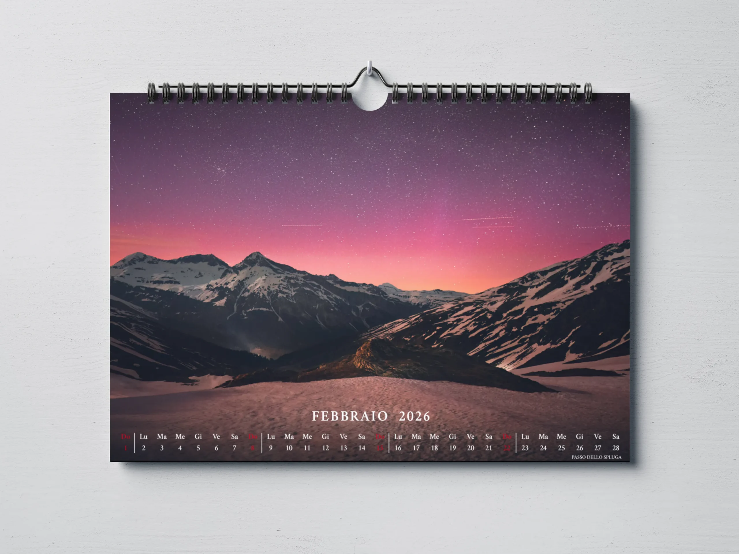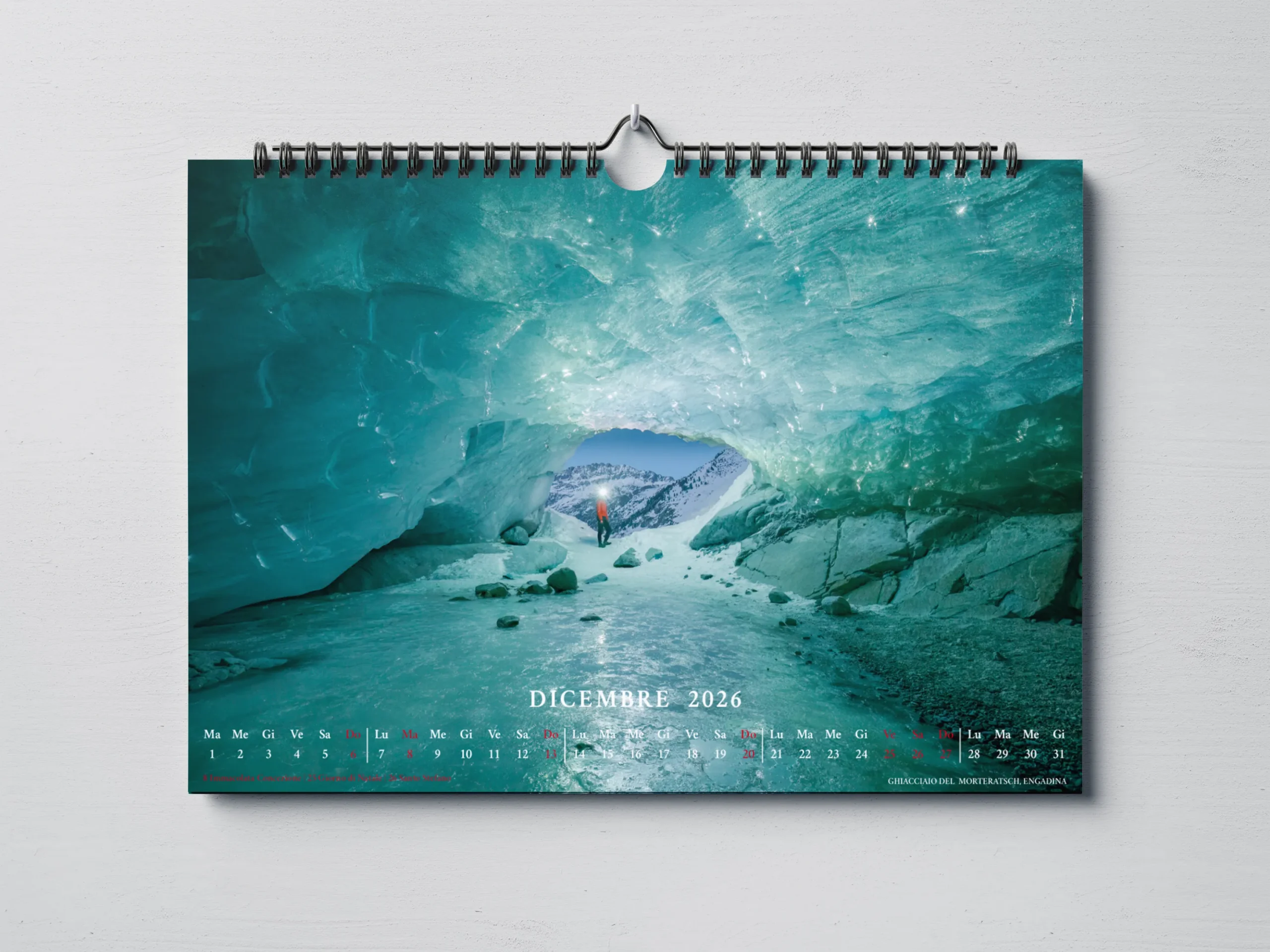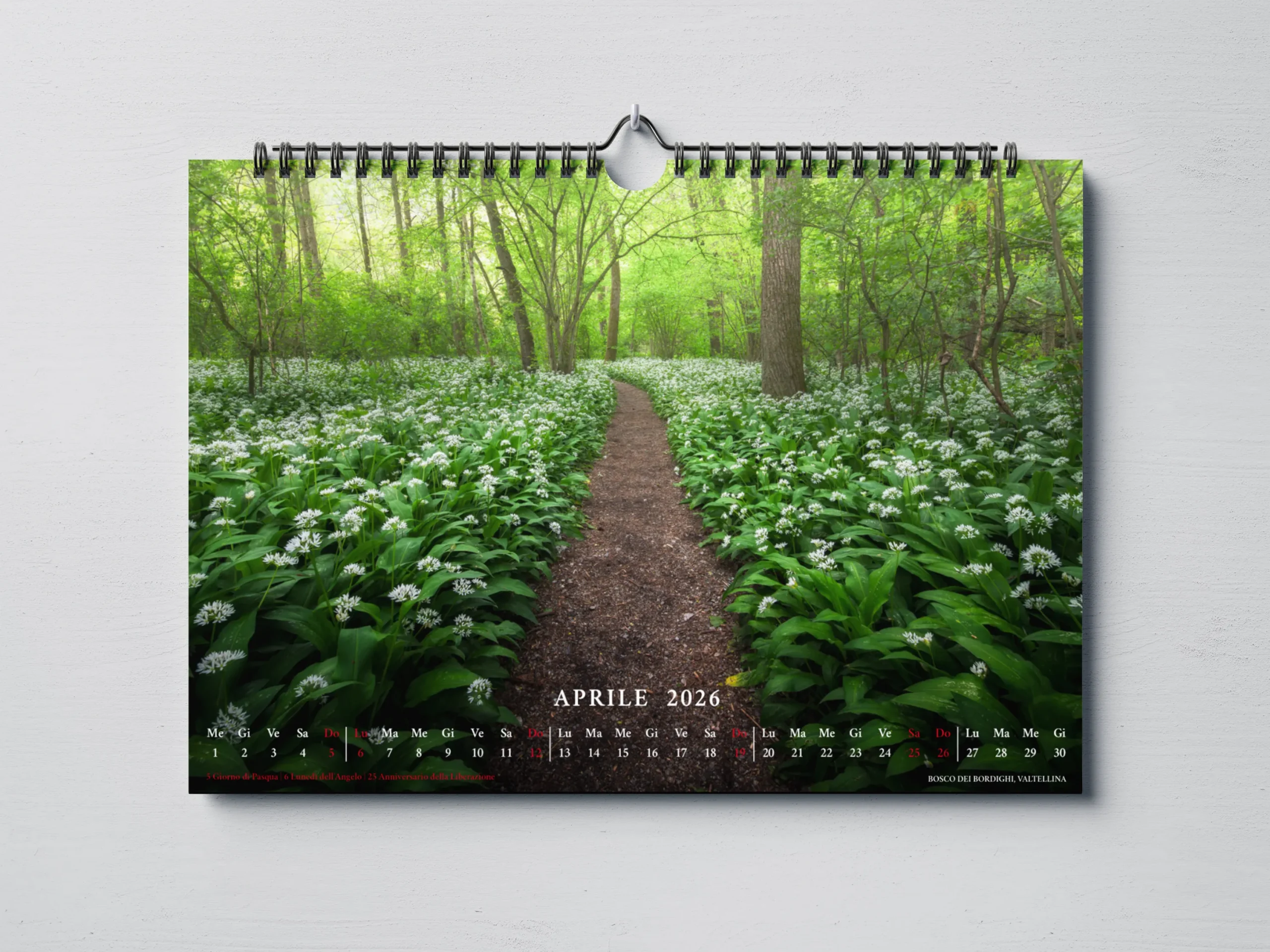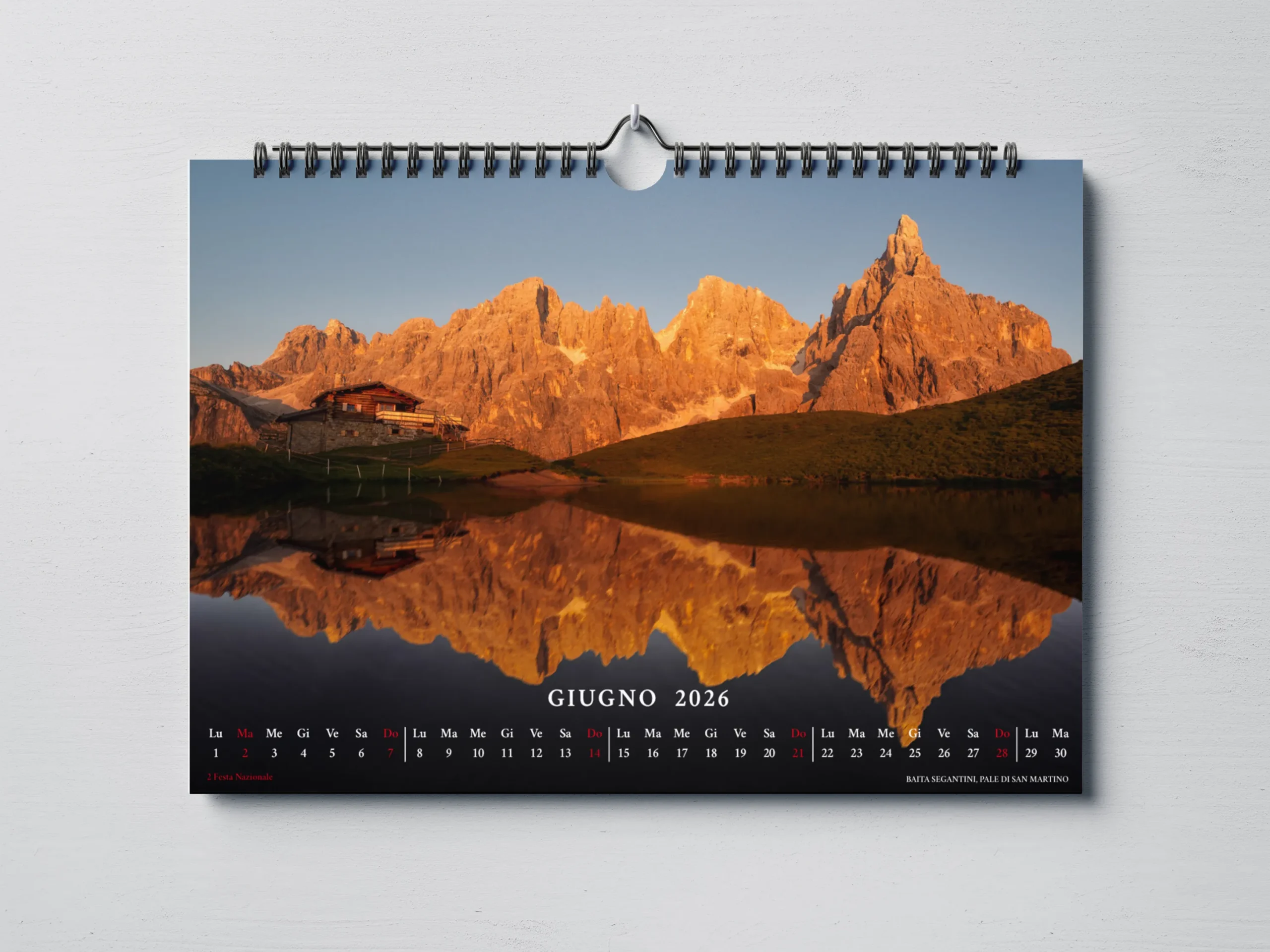 Il calendario, in formato orizzontale 45×30 cm, è stampato su carta fotografica opaca di alta qualità per garantire colori vibranti e dettagli nitidi.