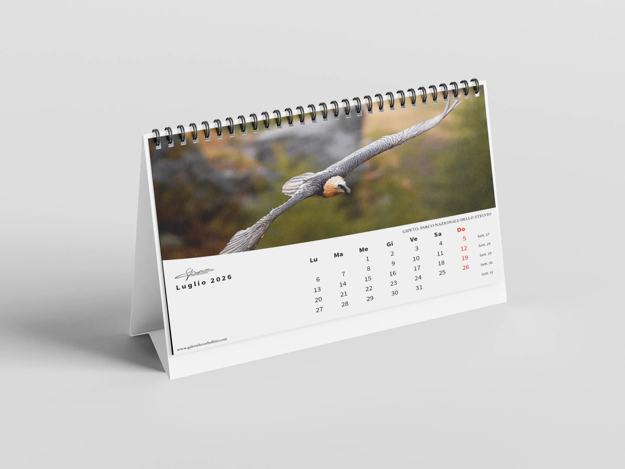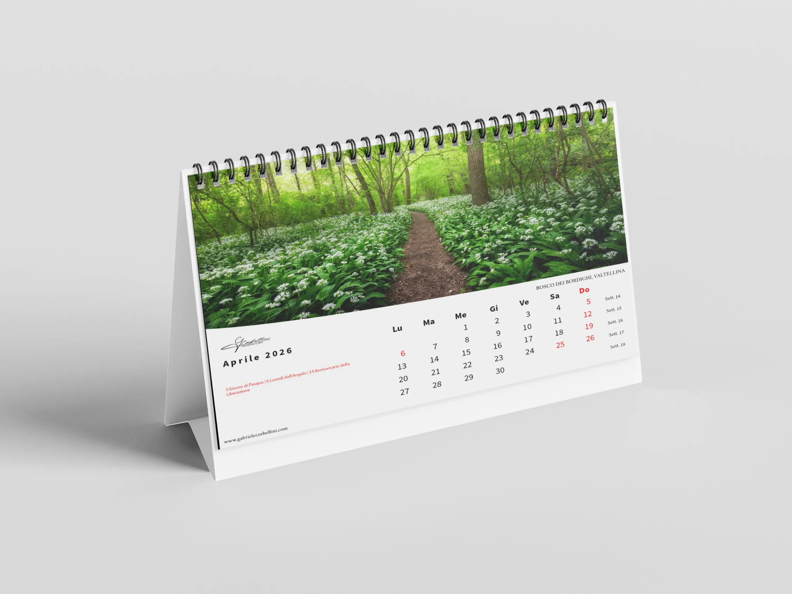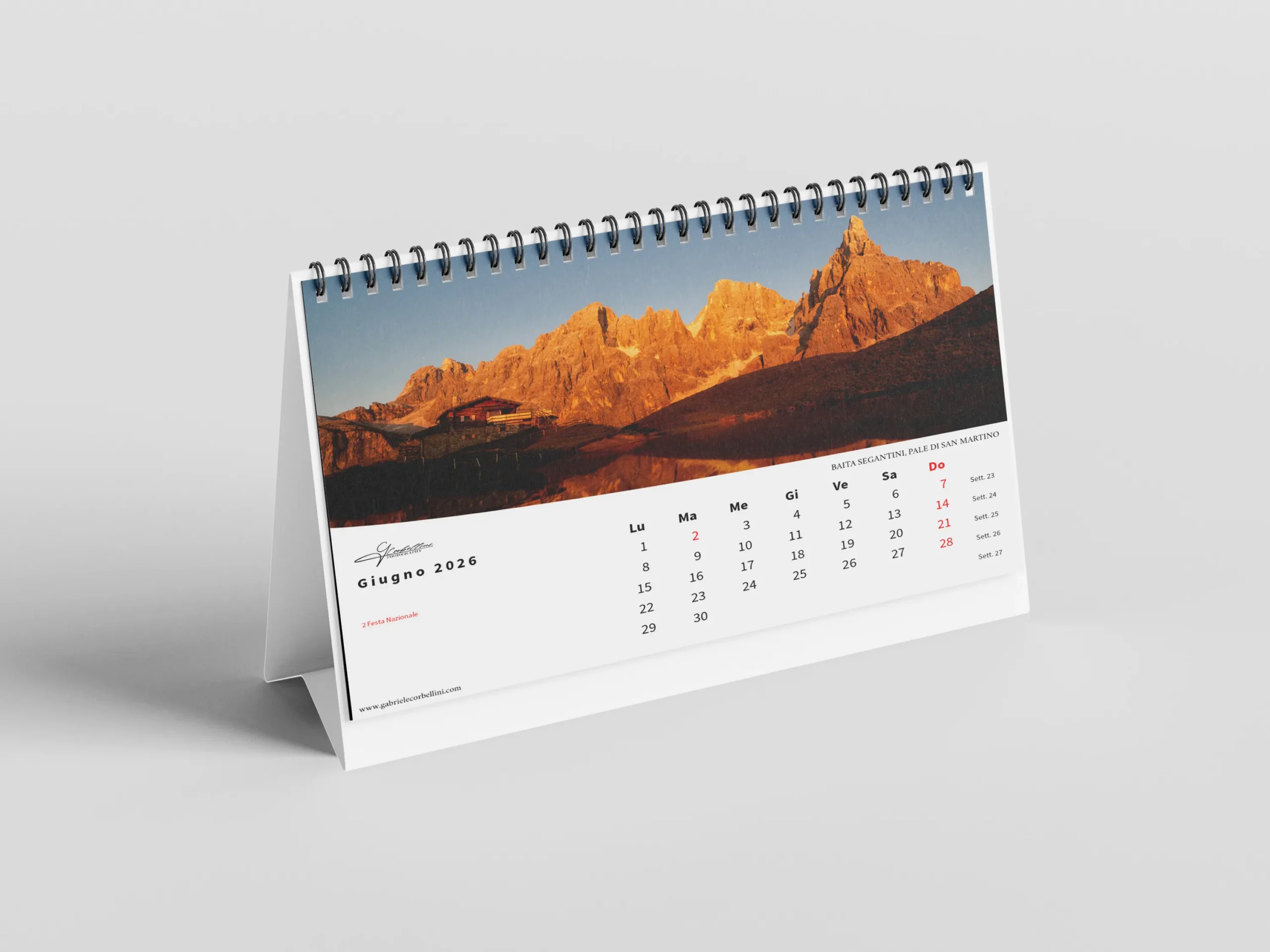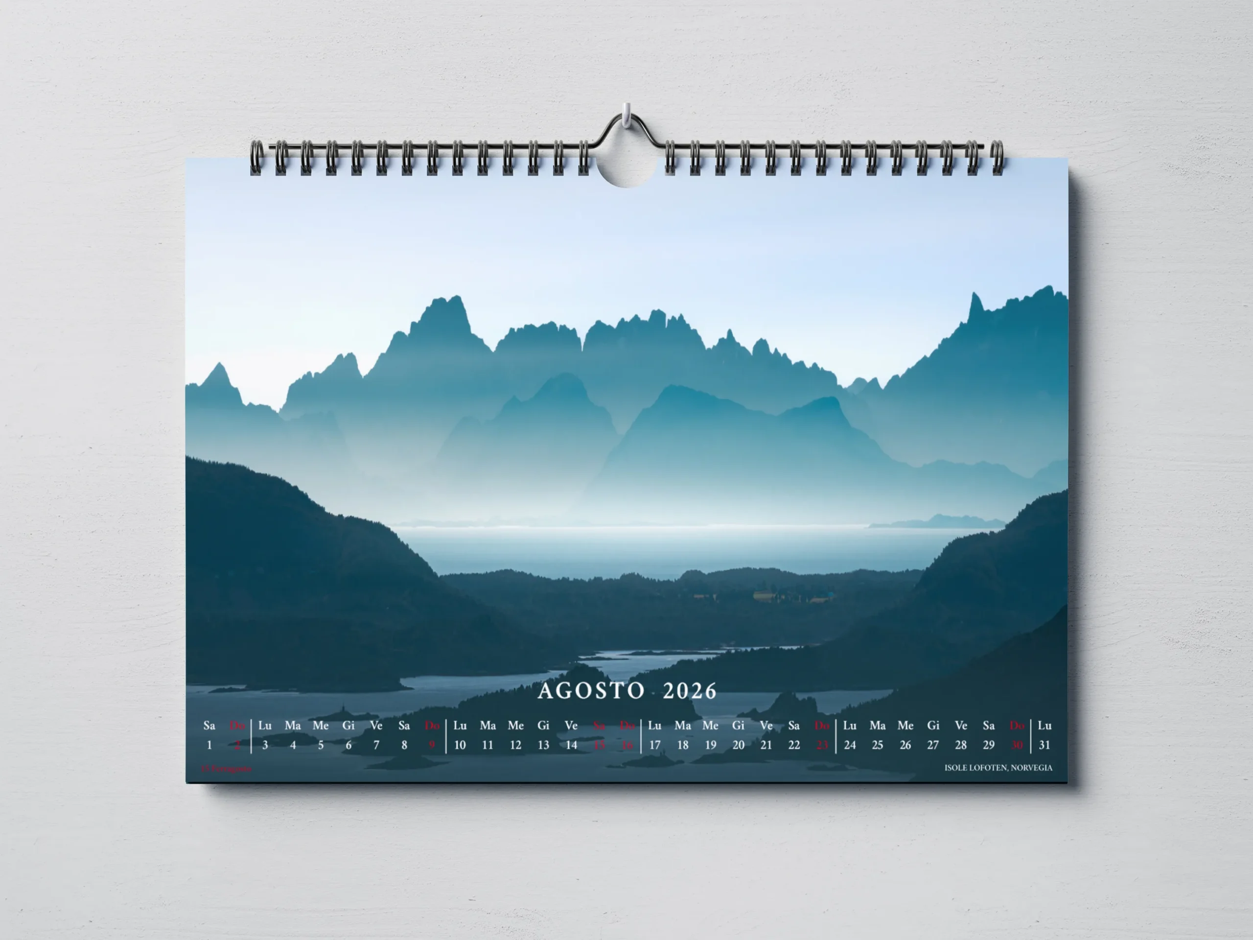 Il calendario, in formato orizzontale 45×30 cm, è stampato su carta fotografica opaca di alta qualità per garantire colori vibranti e dettagli nitidi.