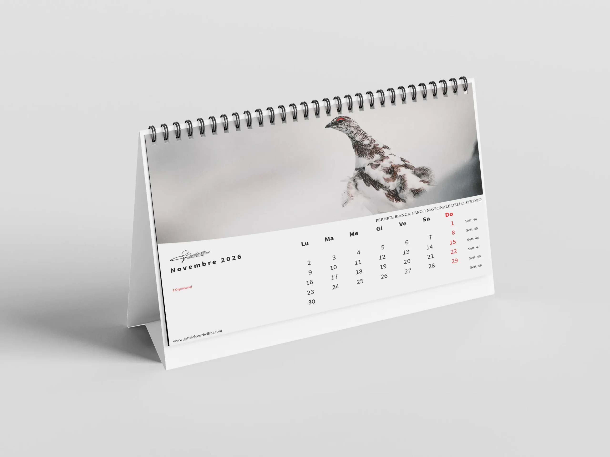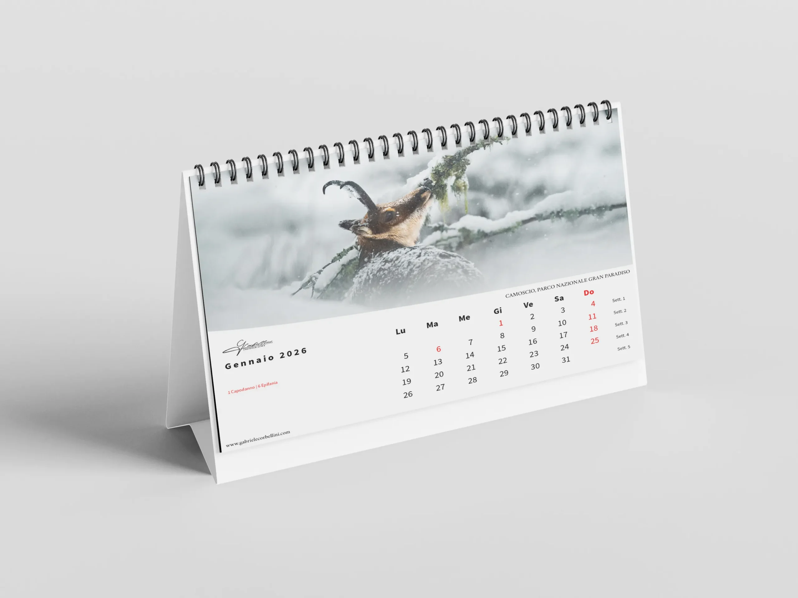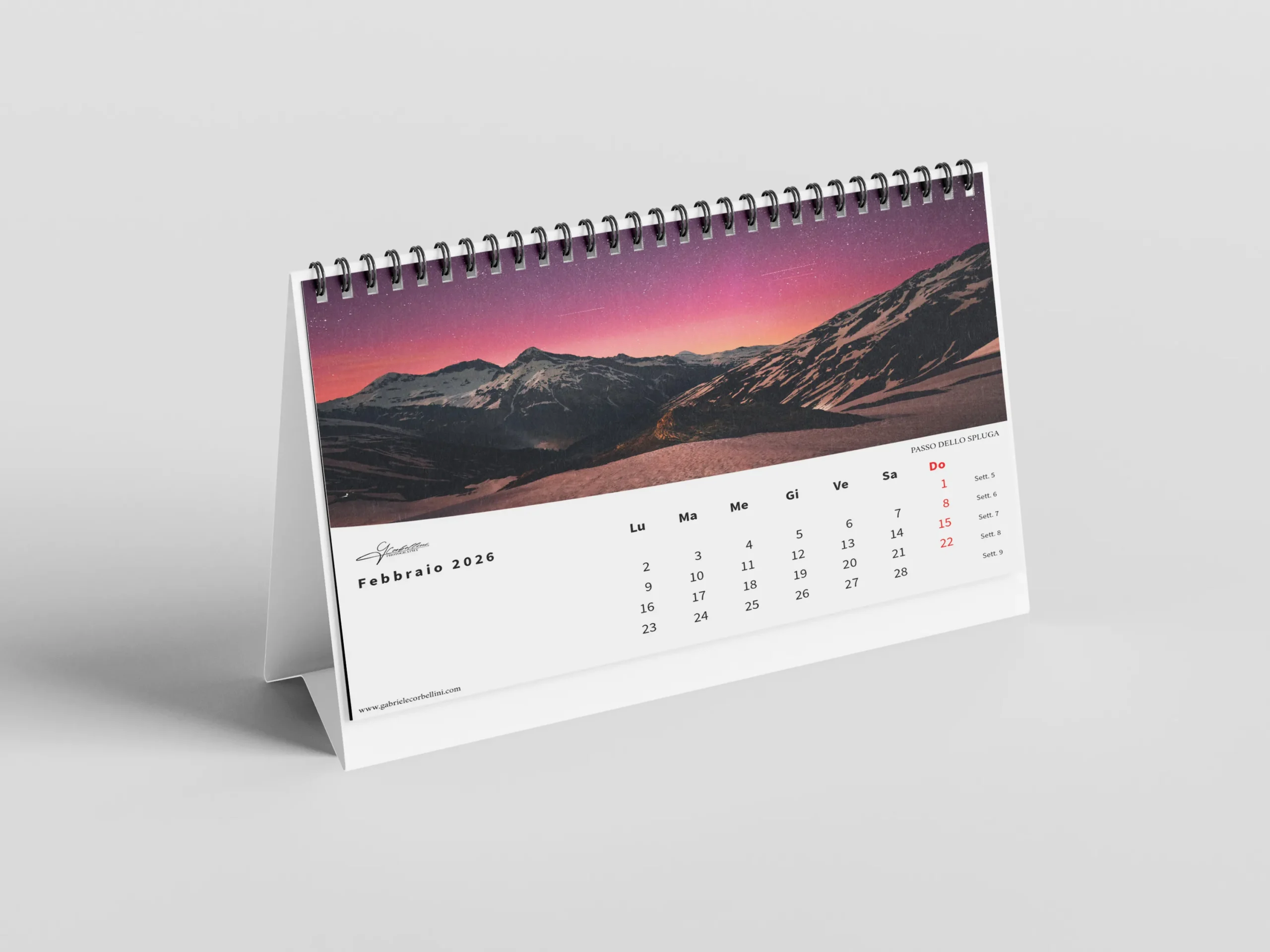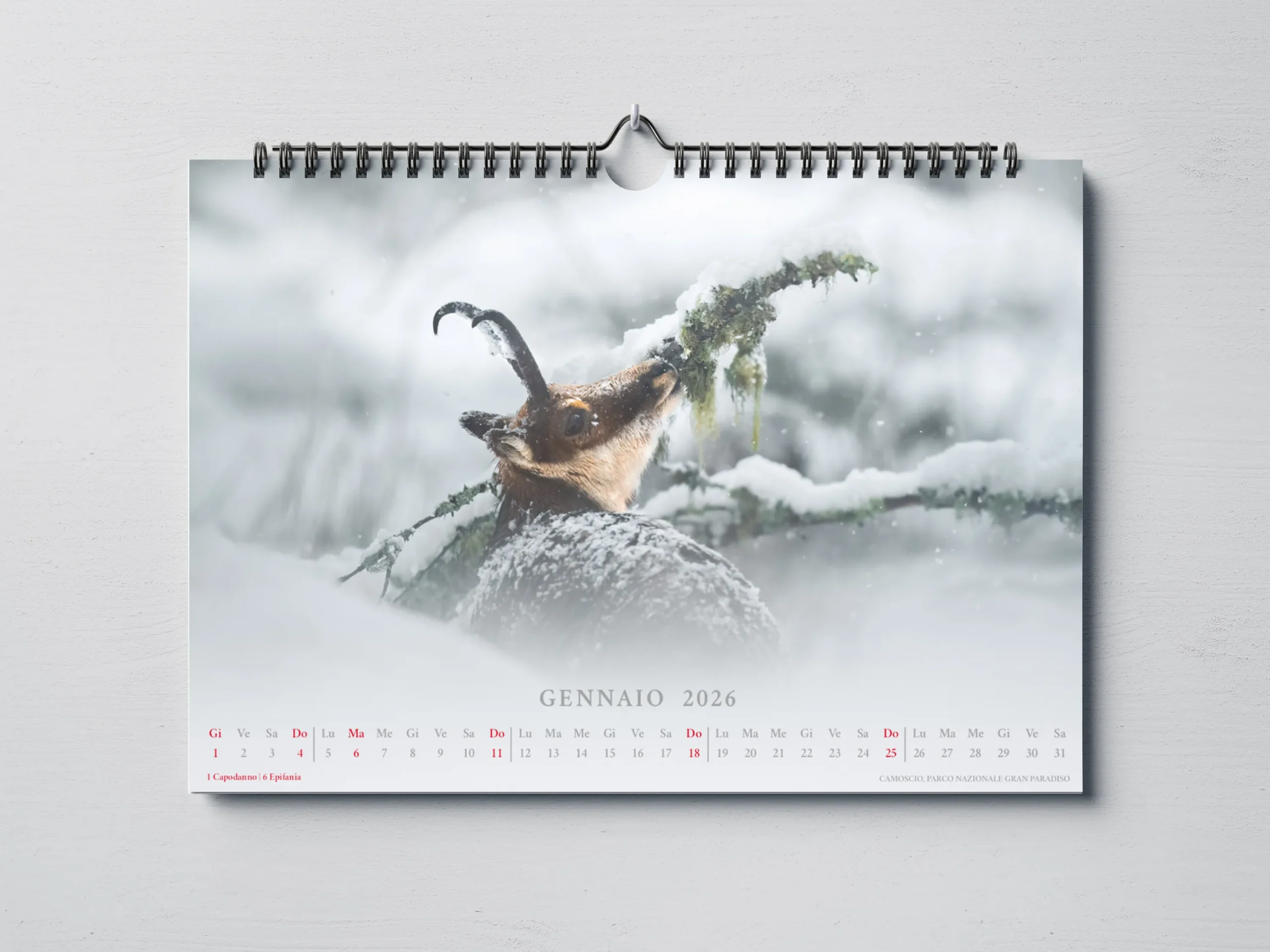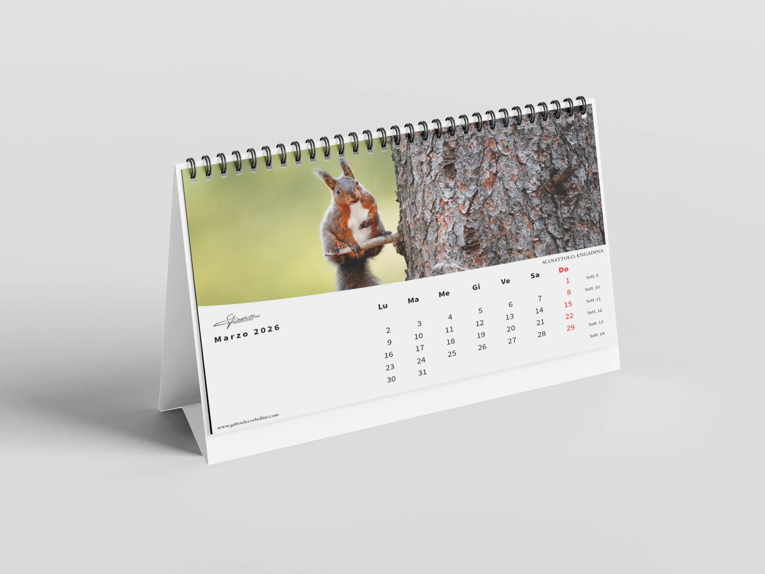 Il calendario, in formato orizzontale 45×30 cm, è stampato su carta fotografica opaca di alta qualità per garantire colori vibranti e dettagli nitidi.