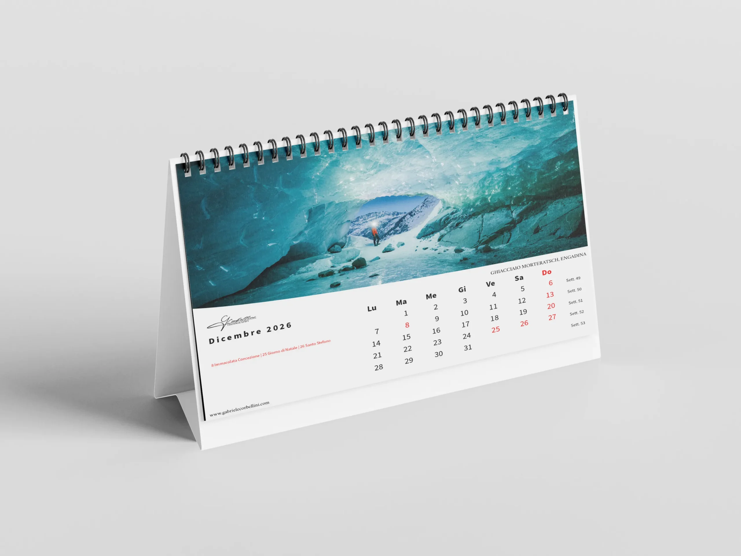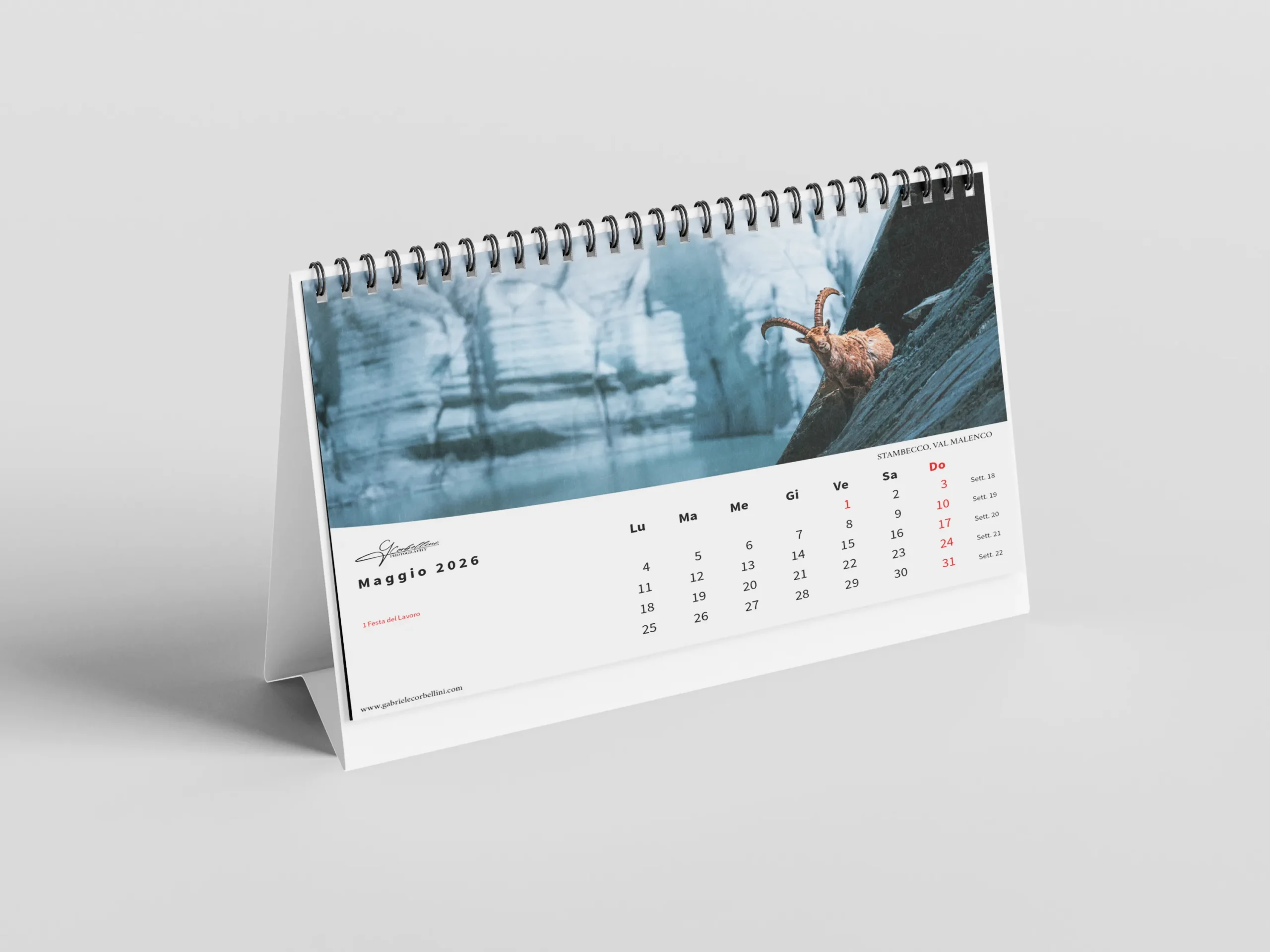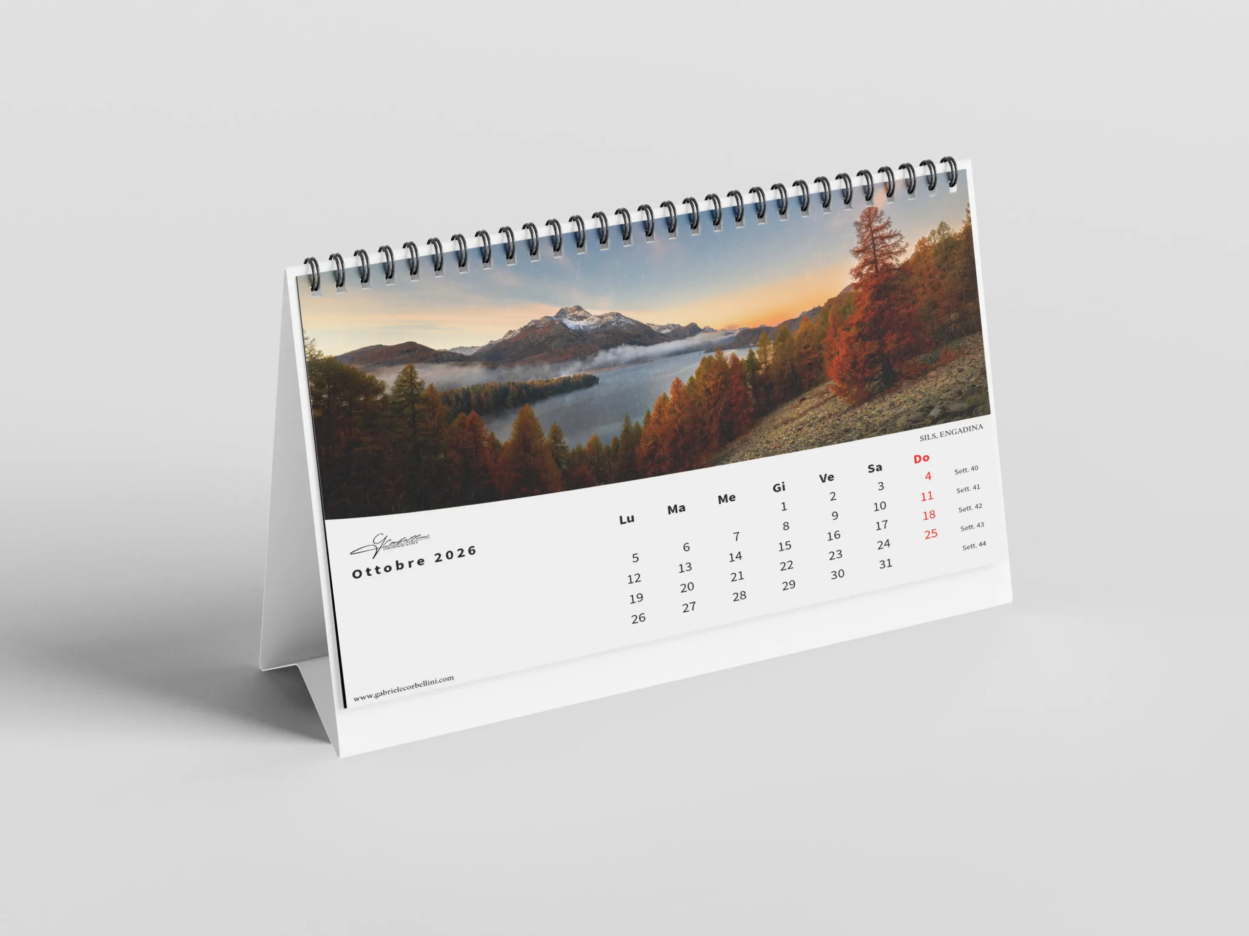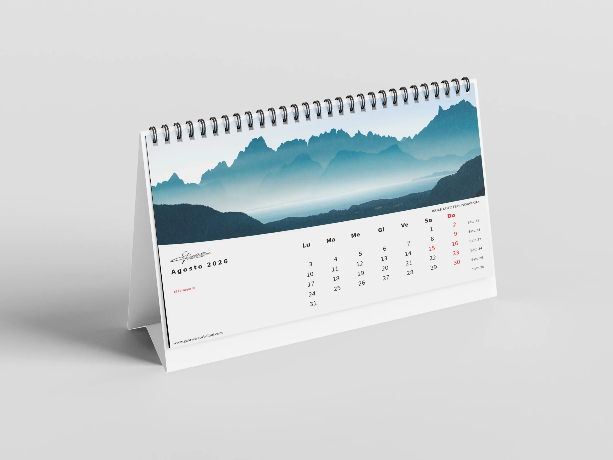 Il calendario, in formato orizzontale 45×30 cm, è stampato su carta fotografica opaca di alta qualità per garantire colori vibranti e dettagli nitidi.